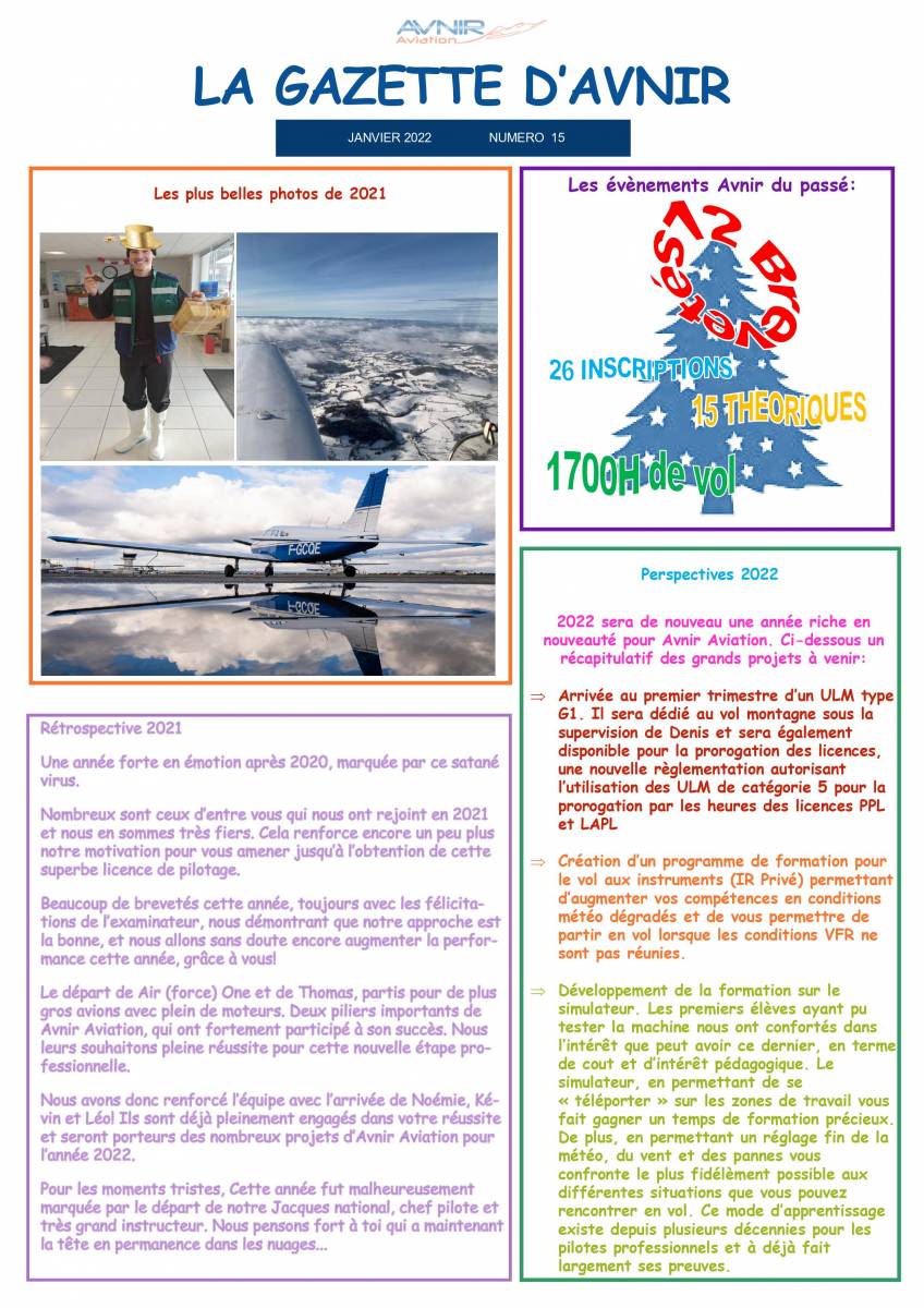 Tel:0427823202 Email:contact@avniraviation.fr L'équipe d'Avnir Aviation, composée de 9 membres dont 6 instructeurs et un examinateur, propose des formations PPL, LAPL, VFR de nuit, vols d'initiation, simulateur et baptêmes depuis l'aéroport Lyon-Bron.